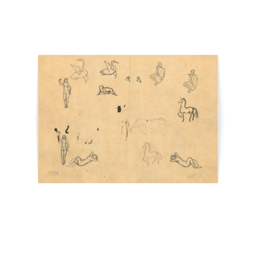 Please note that many pieces in our collection are of centuries-old works. From 1700s sketchbook pages to New Deal–era folk art, we intentionally preserve the marks, smudges, folds, and other signs of age found in the originals. We don't see these details as flaws, but part of the artwork’s history and authenticity, telling the story of how each piece has been handled, stored, and loved over time.