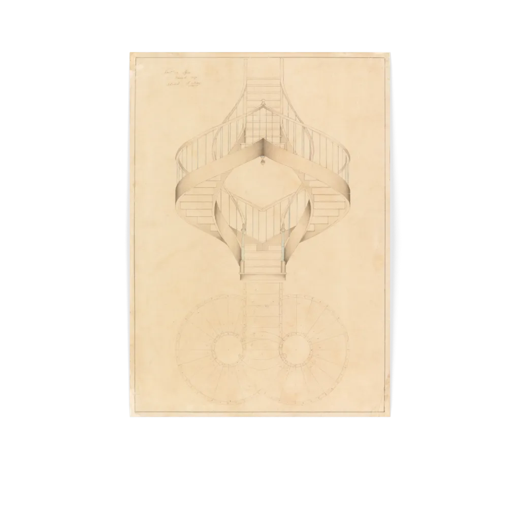 Architectural Plan for a Double Spiral Staircase Print, 1887